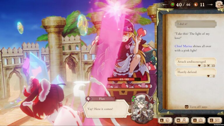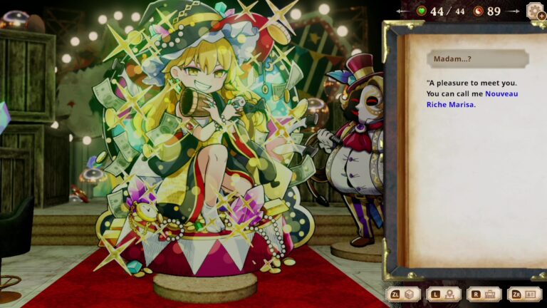 In Marisa of Liartop Mountain, when you gain a level, you’ll be able to choose a viewpoint on how to make Reimu stronger—you’ll have to decide between Remilia Scarlet, Flandre Scarlet, Patchouli Knowledge, and Sakuya Izayoi. You should pick whichever one speaks to you.