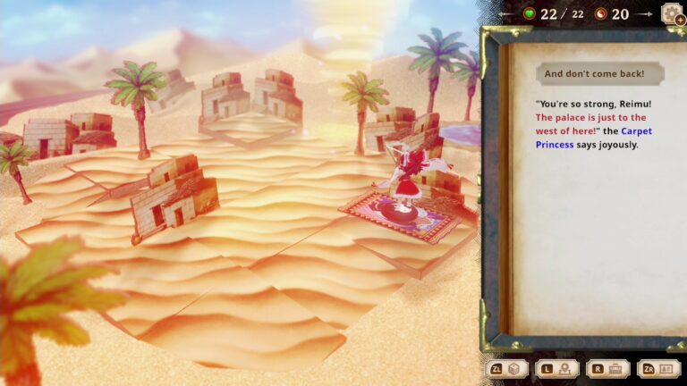Chapter 2 takes place in a desert where sections are walled-off due to sandstorms. What’s neat about this chapter is that the explorable area will get bigger the further into the adventure you get. You’ll also run into a lot more enemies than Chapter 1, so maybe you’ll want to try avoiding taking damage to begin with instead of defeating them outright.