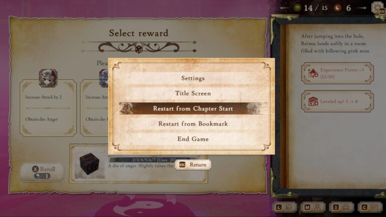 …All that said, you might come to a point when you feel like you’re truly all out of options. Like you’ve been fully defeated. When that happens, you can always go to the menu and choose “Restart from Chapter Start.”