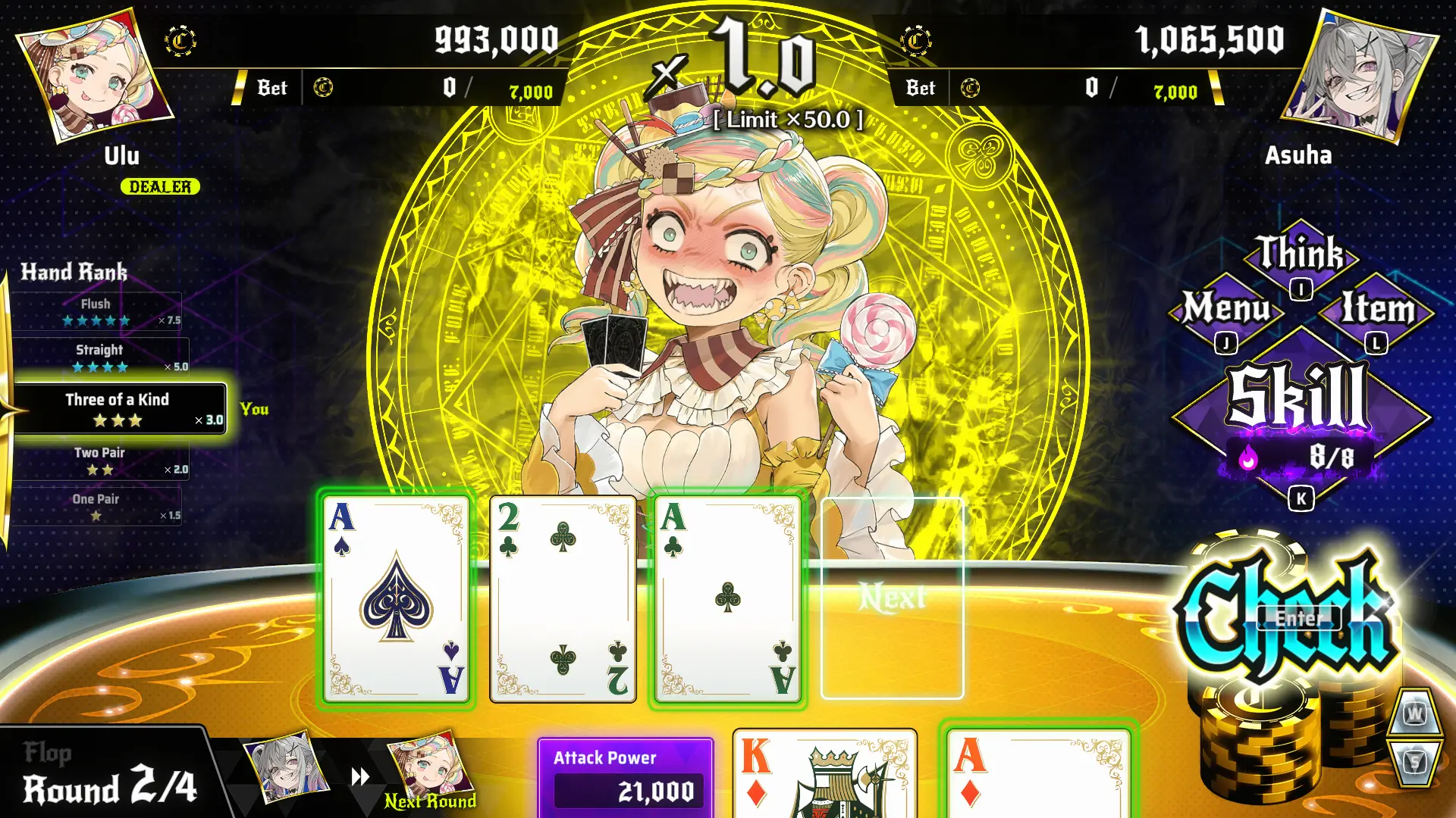and use All-In to bankrupt them and become the champion of the gambling district.