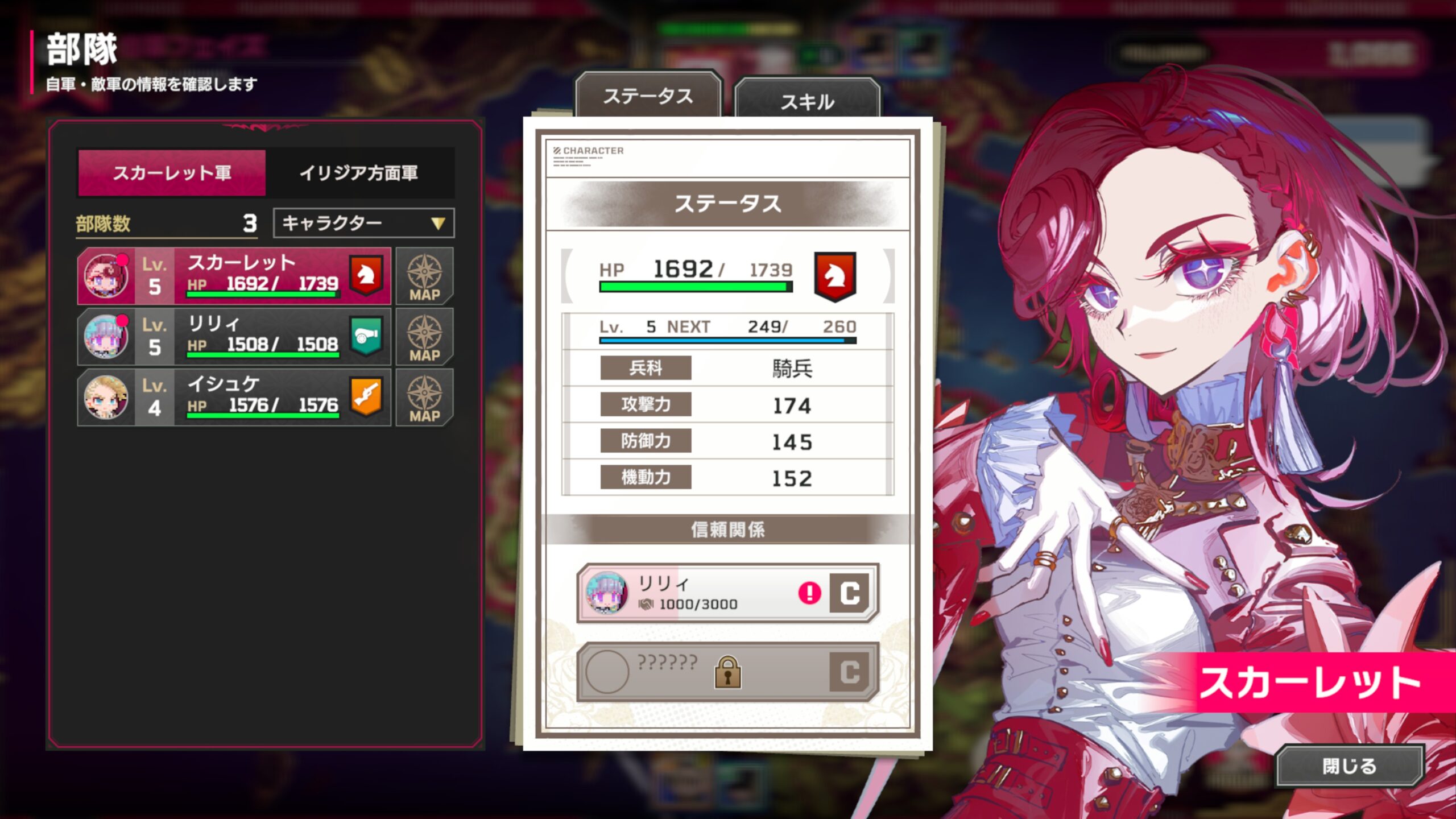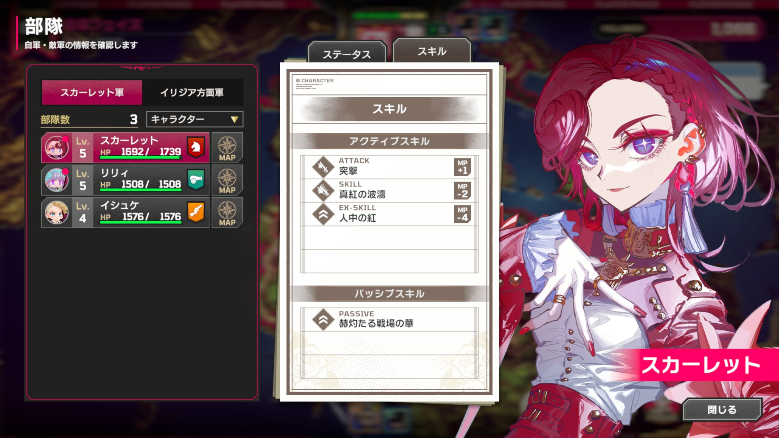 一方で、スカーレットとリリィ以外のキャラクターは撃破されても一定ターン後に復活し、本拠地が敵に占領されてもゲームオーバーにはなりません。